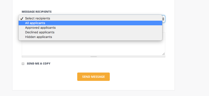 Organizers could talk to the whole group of applicants by sending them a group message, or send individual messages only to the ones they were most curious about.