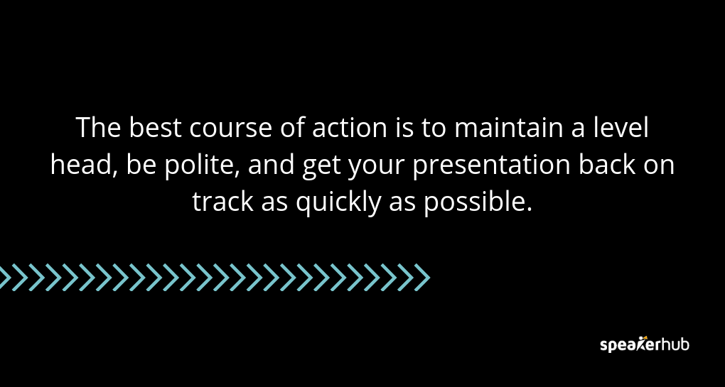 The best course of action is to maintain a level head, be polite, and get your presentation back on track as quickly as possible.
