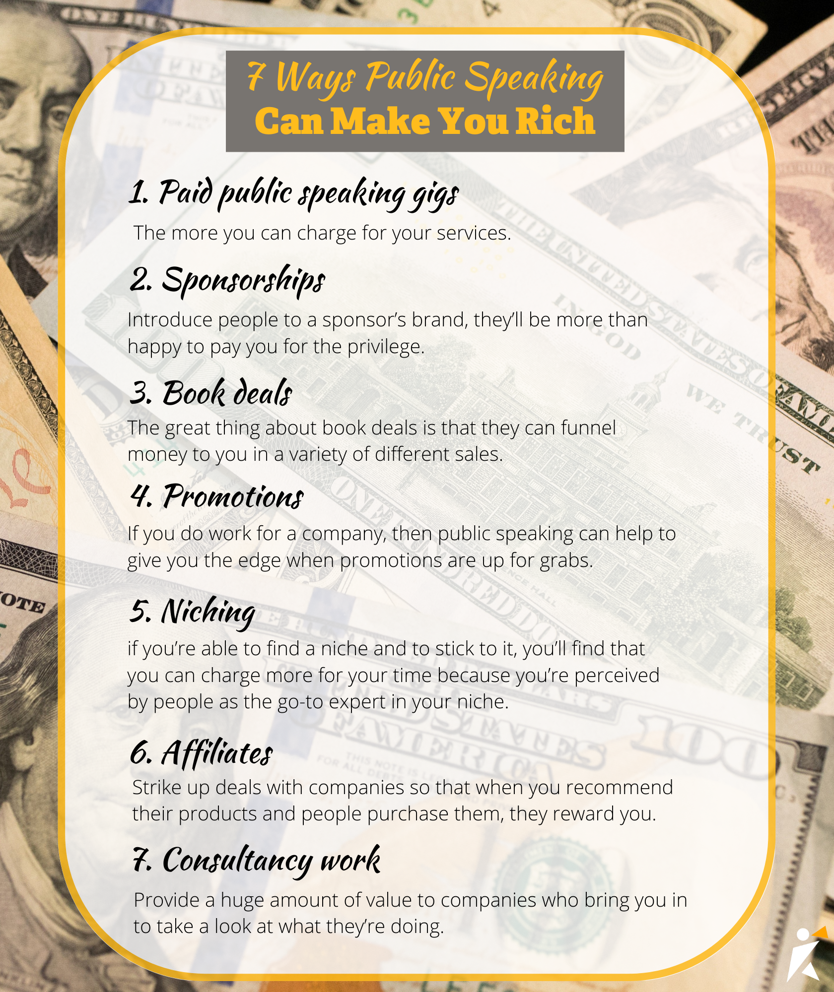 And so now that we’ve got those disclaimers out of the way, let’s get into the meat of today’s article. Here are seven ways that public speaking can make you rich.