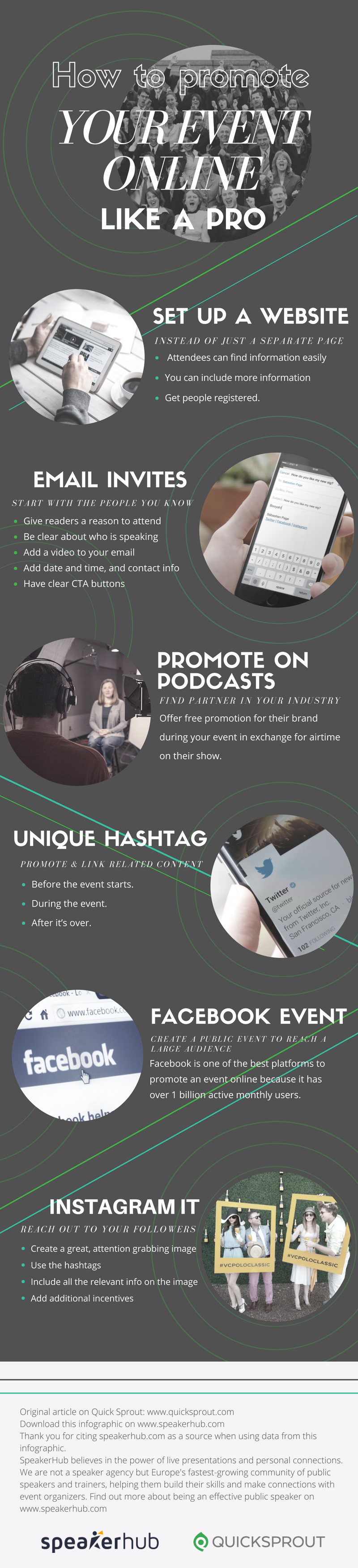 There are hundreds of details to consider when it comes to organizing a great event, and there are no real easy short-cuts, but sometimes a clear and simple list can make a world of difference: that is why we love Neil Patel’s recent article “How to promote your event like a pro”.