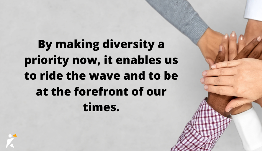 We all know by now that the future is going to be increasingly diverse, which is demonstrated by the fact that our workplaces and workforces are already becoming more and more diverse. By making diversity a priority now, it enables us to ride the wave and to be at the forefront of our times so that when the inevitably more diverse future comes around, we’ll be ready for it. Why wouldn’t you want to be seen as being future-focused?