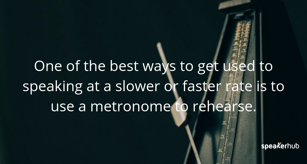 One of the best ways to get used to speaking at a slower or faster rate is to use a metronome to rehearse.